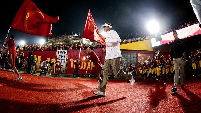 I bring all this up because USC is on the brink of relevance again, because after a brief two-season hiatus due to a scandal weighted by five decades of inflation, the Trojans are near the top of the arbitrary preseason polls compiled by the glossy preview magazines that chewed up my summer vacations as a child. And once again, they're led by a young coach in his late 30s who tends to inspire skepticism. And I don't know if this is the dawn of another dreamlike golden age for the Trojans, but I know there are a lot of people back east who sincerely hope that it isn't.